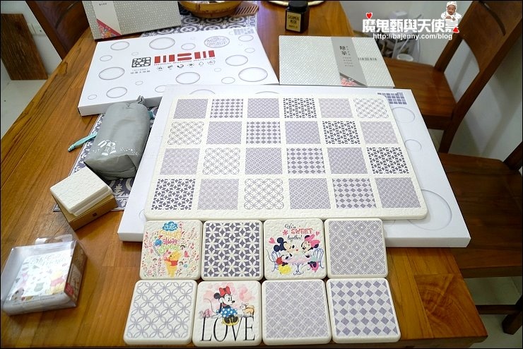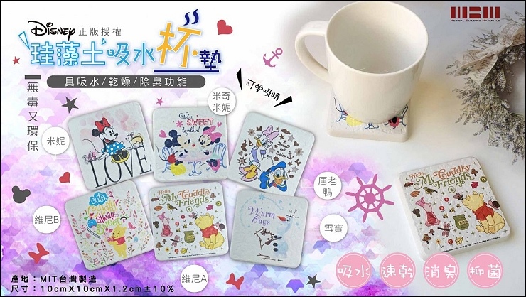 去韓國前收到的珪藻土大軍,各種尺寸都有!浴室地墊/杯墊/茶墊,其中最吸睛的當然是這幾片小巧可愛的迪士尼授權杯墊!!