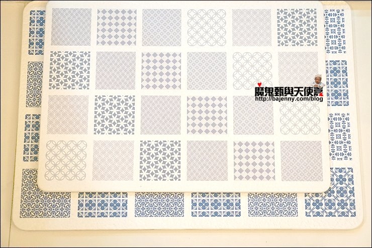 這次的珪藻土地墊都是花磚圖案,有分大小尺寸,第二張大尺寸這片花色是慵懶格調,第三張小片花色是極簡永恆,不過都是採方塊圖案設計,要仔細看才能分辨出來。