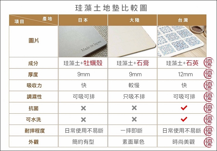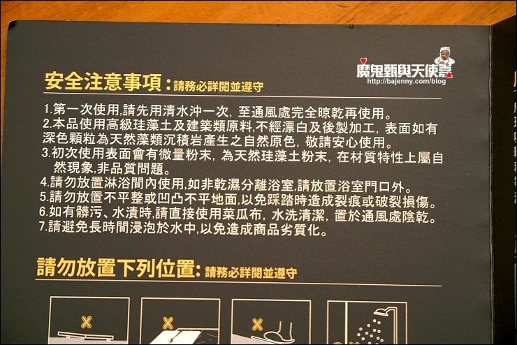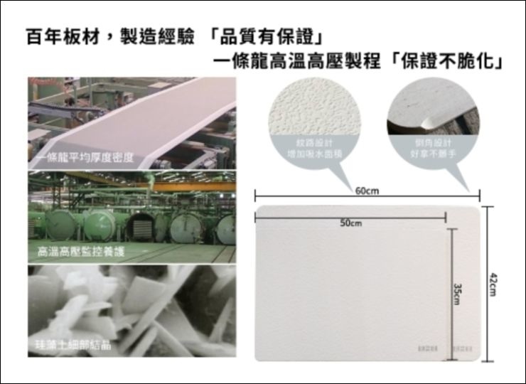 3.本品使用高級珪藻土及建築類原料不再置加工,表面出現顆粒是珪藻土原料產生之自然原色,敬請安心使用。