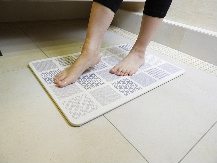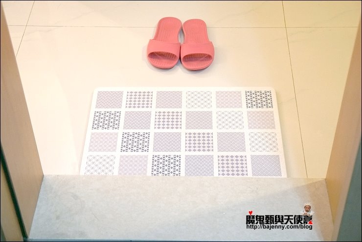 厚度達1.2cm,吸水性強、不易破裂、通過SGS檢驗不含甲醛!我覺得也比之前的較不易滑動,洗好澡光著腳丫觸碰到的是乾潔舒爽的地墊感覺真好!!真不知道自己之前是在忍耐什麼XD