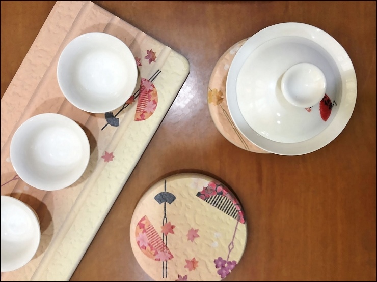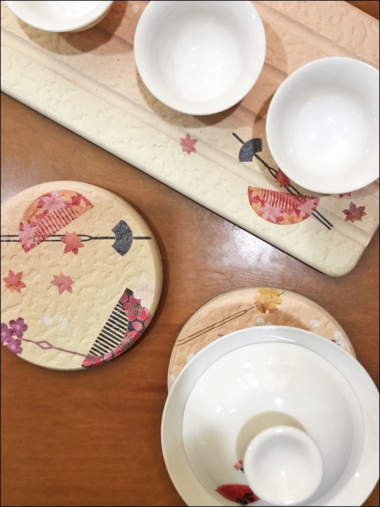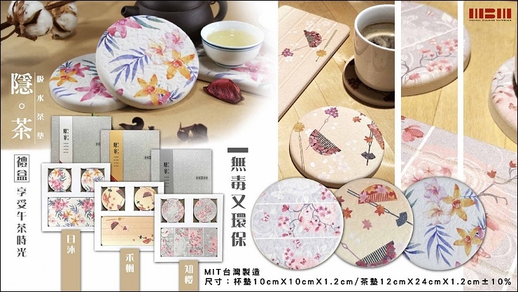 這款隱茶禮盒適合拿來送禮,共三種日式風格圖案,內容物計一茶墊兩杯墊,很簡捷的包裝,一樣是天然珪藻土高溫高壓製成,乾淨無毒,可保桌面乾燥整潔。