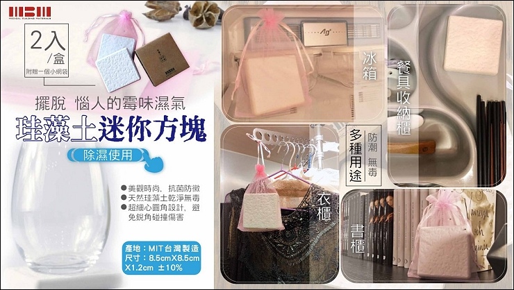 居家生活很多地方都需要除溼抗菌,尤其是冰箱、衣廚及餐具收納櫃,丟幾塊迷你方塊珪藻土就可以起到作用!