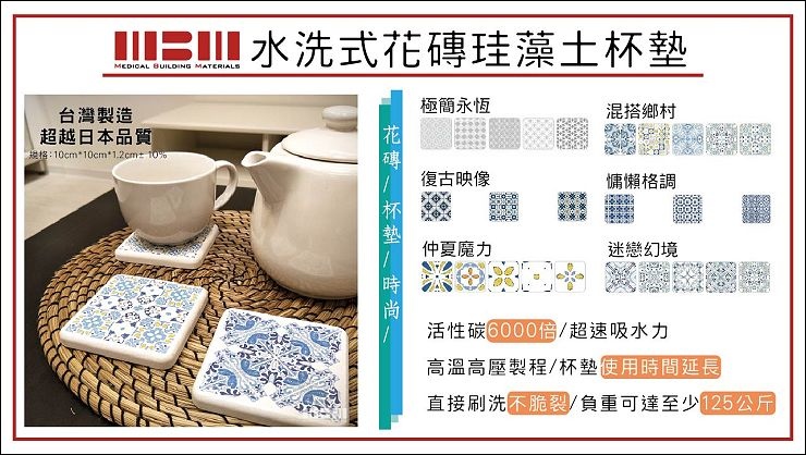 《環保綠建材》讓你的生活金速吸~水洗式花磚珪藻土地墊/杯墊/茶墊