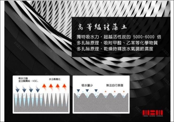 珪藻土(也稱矽藻土),是珊瑚及古浮游植物推積在海底和湖泊底部多年的天然礦物化石,天然無毒又環保,具有驚奇的強大吸水力,可以迅速吸收多餘水氣,並且調節濕度,許多文獻指出,珪藻土可以改善居家環境,讓室內更加乾爽舒適。