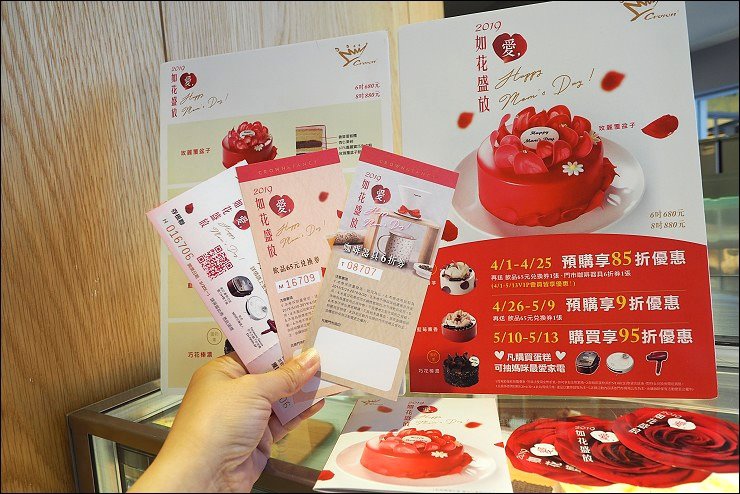 金鑛咖啡2019愛。如花盛放 母親節優惠活動有三波,第一波是給提前做準備的早鳥預購,即日起至4/25(四),至門市預購任一款母親節蛋糕,即可享有85折優惠,再送飲品65元兌換券1張、門市咖啡器具6折券1張以及摸彩券1張。(贈送兌換券使用日期5/20-6/30。)