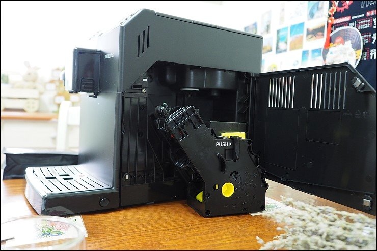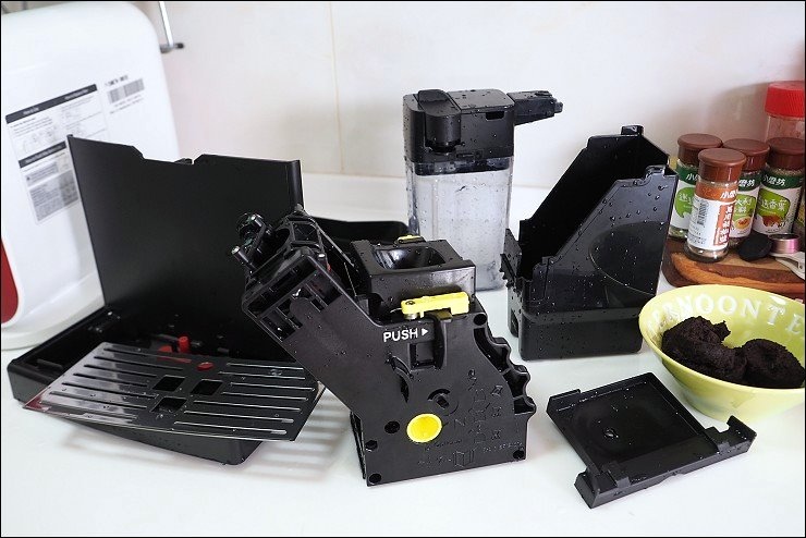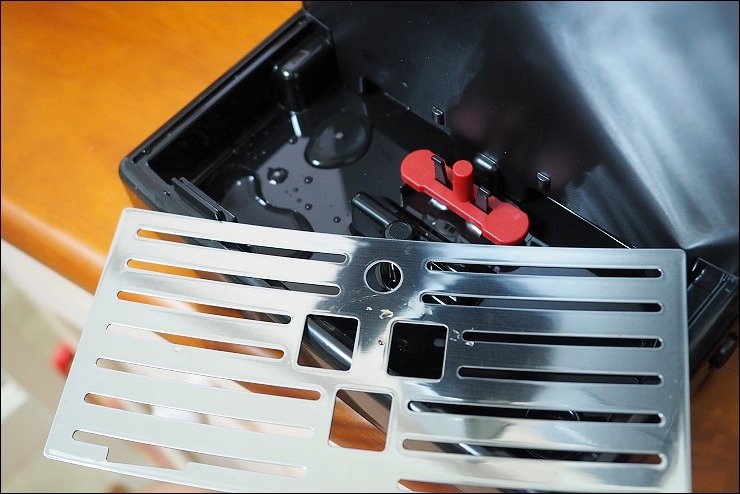 全自動義式咖啡機煮咖啡時全自動,只有集水盤和沖泡器需要手動清洗,集水盤裡有個紅色浮球設計,裡面的水若到達滿水位,紅色的浮球會凸出來,提醒你拿去倒掉清洗,我個人習慣每天都會清洗。