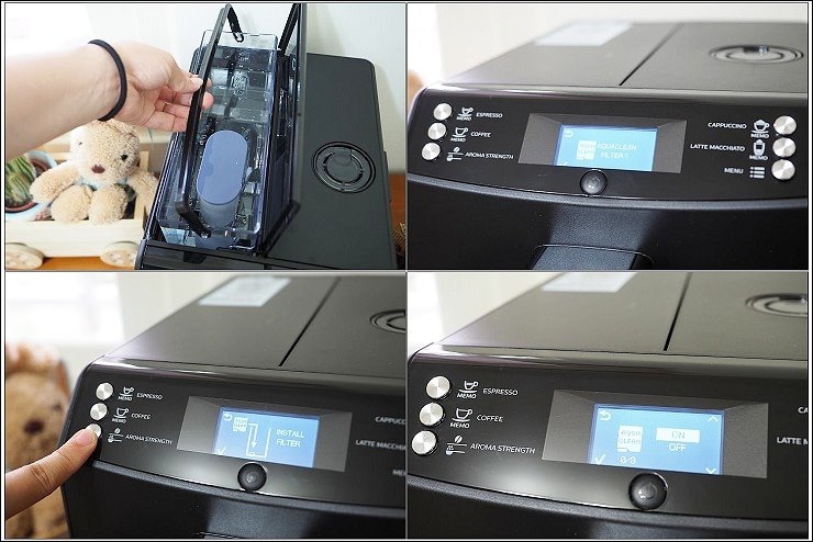 水箱有濾心的設計,家裡沒有裝淨水器的朋友,咖啡機水箱可以另外使用濾心,只要按照步驟,把濾心先用滿水浸泡,再安裝在水箱裡即可,這樣咖啡喝起來更安心。