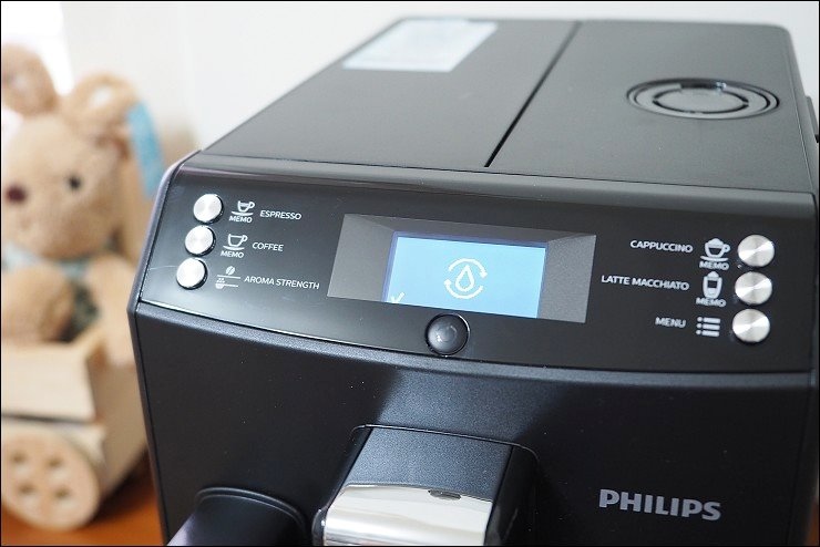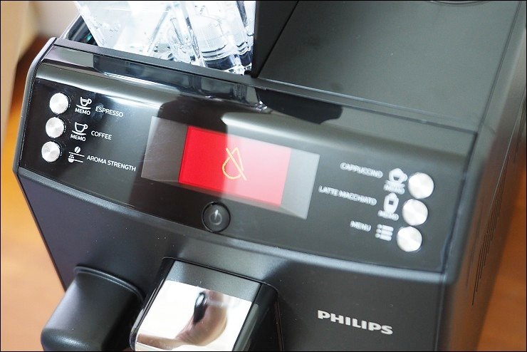 最近家裡的生力軍是這台飛利浦PHILIPS全自動義式咖啡機(型號EP3360),操作非常簡單,面板只有六個按鍵,有香濃的義式濃縮咖啡Espresso,還有含牛奶奶泡的卡布奇諾及拿鐵,共五種飲品,完全不需要高深技術,只要用手指按個鍵,好喝的咖啡就端上桌。