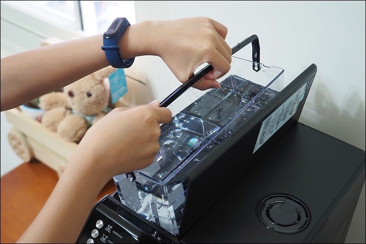 廚房就有裝濾水器的朋友,咖啡機的水箱可以直接裝過濾水就行,水箱缺水時螢幕會顯示,水箱滿水位可以煮好幾杯咖啡。