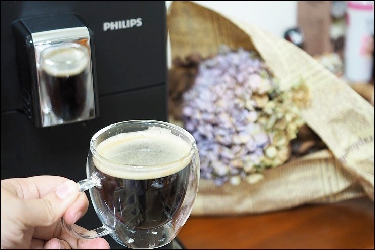 Philips全自動義式濃縮咖啡煮得很好,Espresso的精華Crema就浮在上層,真的很專業,上層細緻的CREMA代表咖啡豆天然油脂的口感跟香氣。是說飛利浦全自動義式咖啡機,咖啡機從設計到生產都是歐洲原廠製造,煮出來的咖啡品質有保障,不用出國花大錢,快速又簡單就可以在家喝到正統義式咖啡。