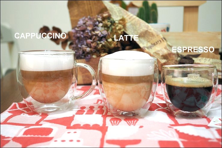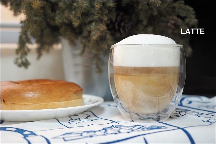 拿鐵的牛奶比例較高,奶泡很綿密吔,奶泡超出杯子竟然不會流出來,這奶泡有厲害,要是自動咖啡機也會拉花就太完美啦!