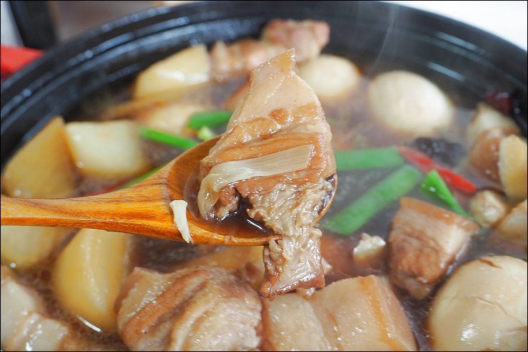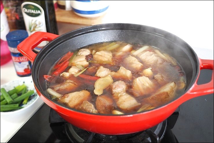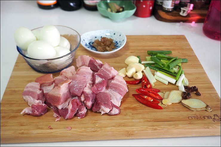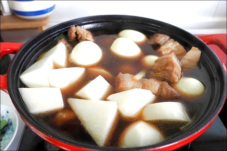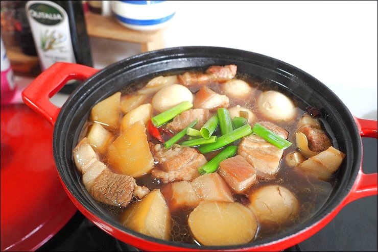 中間我會再加入水煮蛋、跟蘿蔔一起滷,我家張阿嬤有時會加豆干、海帶進去,這樣就可以一鍋滷肉還能出小菜,家人吃的很開心。