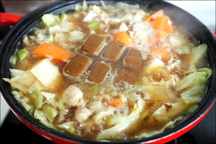 水滾之後再把咖哩塊放進去,可以蓋鍋蓋去燉。