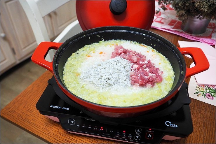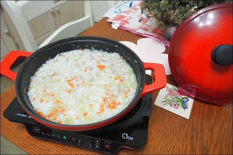 我只是把食材都放進鍋,然後就去做其他事,等這電磁爐嗶嗶叫跟我說它煮好了,我才過來開鍋,完全不用顧爐火,也不用怕米粒黏鍋,按一鍵就幫我幫粥煮好真方便!