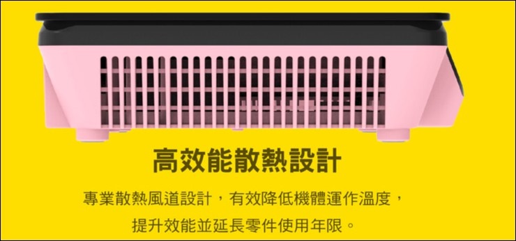 側邊是高效能散熱風口,專業散熱風道設計,有效降低機體運作溫度,提升效能並延長使用年限。
