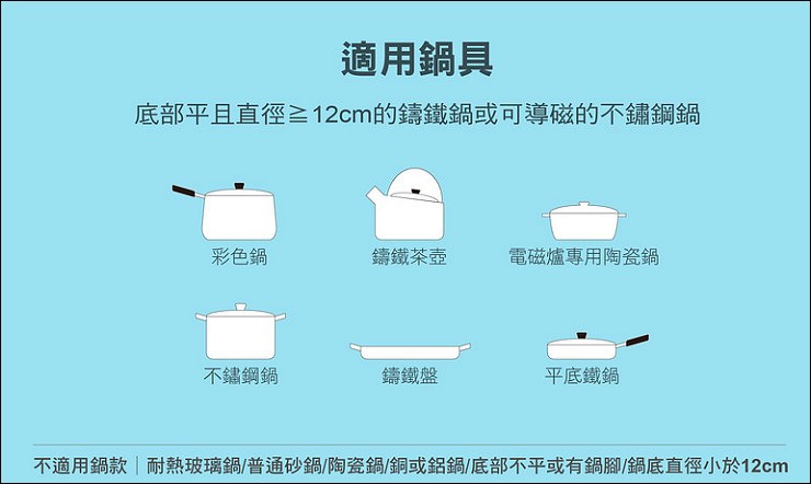 A4 plus 1200 IH智慧電磁爐適用平底鍋,鑄鐵鍋、平底鐵鍋、不鏽鋼鍋、烤盤都適用不受限。