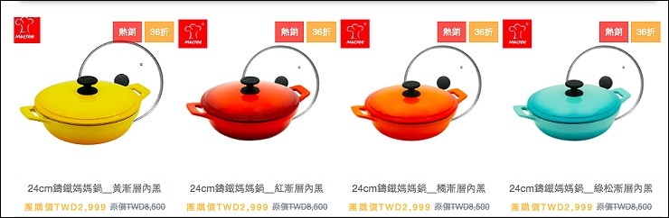 這顆24公分媽咪鍋是鑄鐵鍋黑琺瑯,開鍋先用8分滿水去煮滾後倒掉,再用小火上一點點油,讓鍋子吸油,之後就可以邊煮菜邊養鍋,這咖鍋子可以用很久!鍋子總共有四色可選:漸層紅、漸層橘、漸層綠松及黃色,原價8500元現在團購價3.5折2999優惠價,價格太優惠了 !