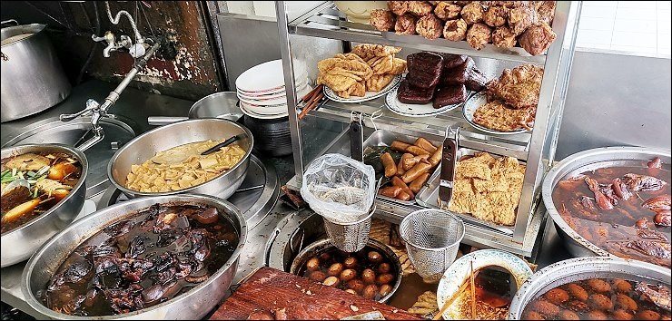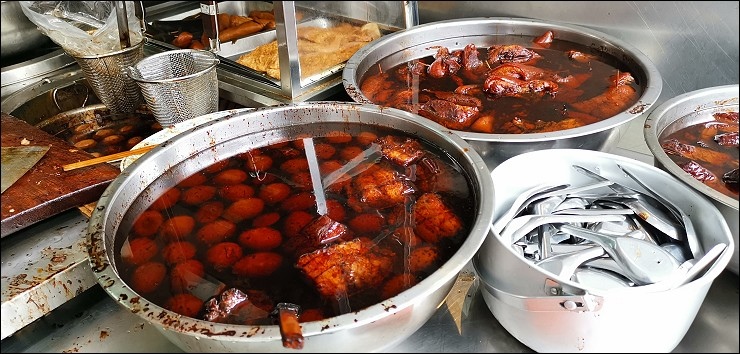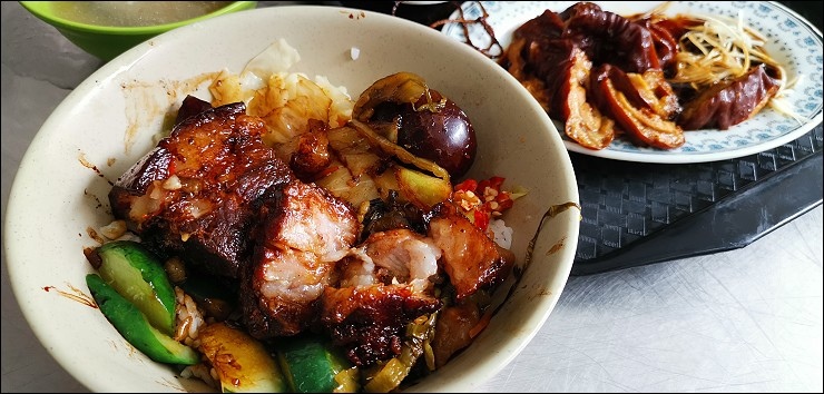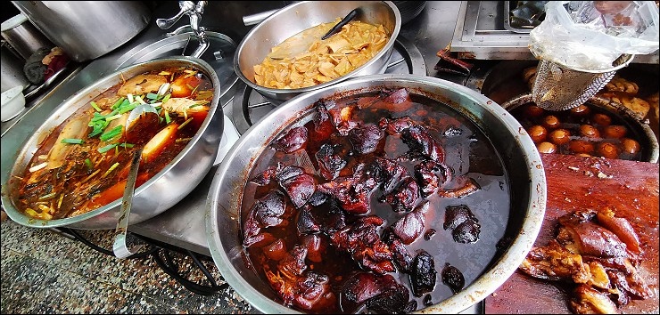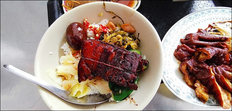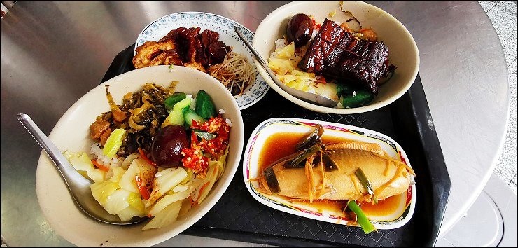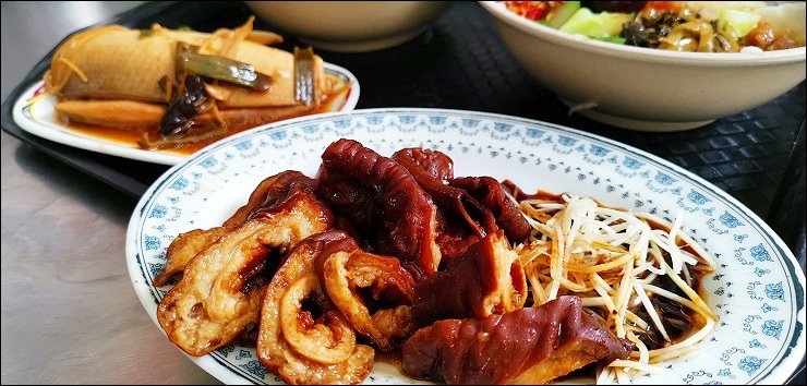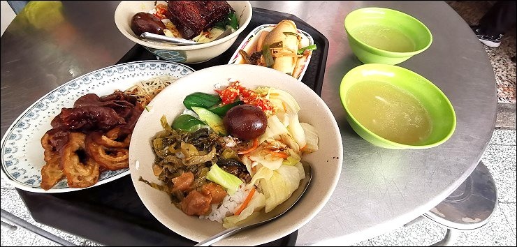 直接跟店員點餐,先結帳自己端去座位用餐。看這豬腳、東坡肉都滷到黑金好迷人,根本就是陳年滷汁的功力。