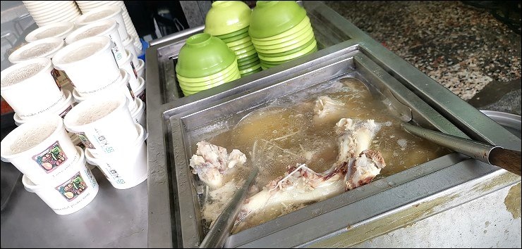 免費享用的大骨湯,今天喝到有加竹筍喝起來有竹筍味,好喝,友人說加蘿蔔的大骨湯也很清甜,吃了很多年的鳥大哥覺得大骨湯沒有以前來的濃郁。