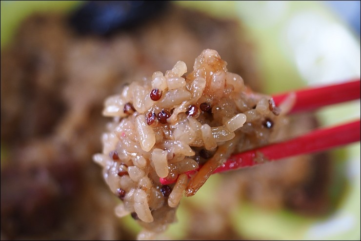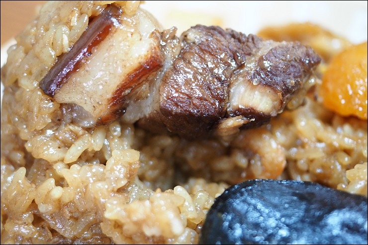 香菇跟蛋黃就不多說,米粒上頭的紅點點,是營養滿分的黎麥,超讚的,當初弟弟還小的時候,保姆煮粥都會加上黎麥,讓弟弟可以吃的更營養!一樣有不少蝦米吃的到海味,米粒除了有黎麥營養大加分之外,還多了叉燒的香甜味,光吃飯就覺得很夠味,像是港版蜜汁油飯,叉燒香甜味滿滿,飯量十足一顆就很飽。