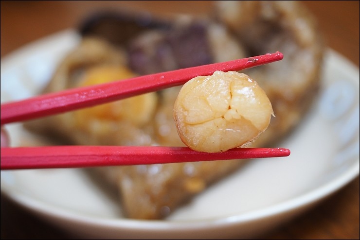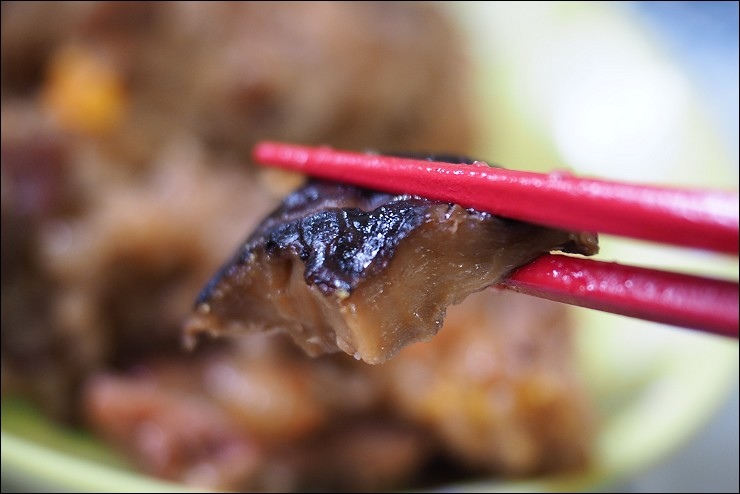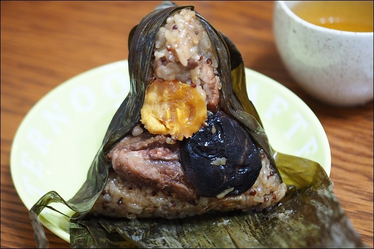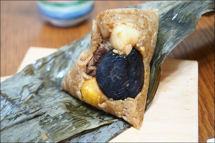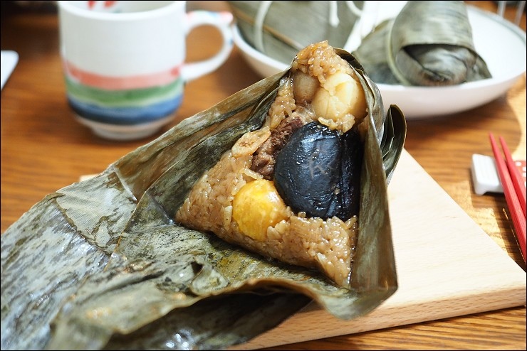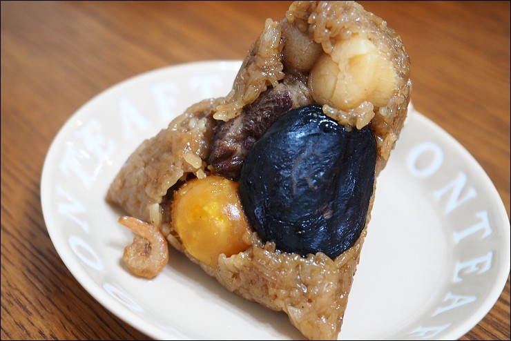 粽子裡頭包干貝很高級耶,要知道我家阿嬤的粽子都只有黃金鐵三角:香菇、蛋黃跟肉,奇華選用日本整顆干貝,把海的鮮味帶進粽子裡,很享受。