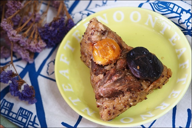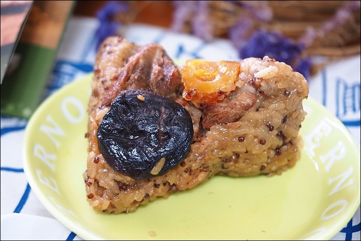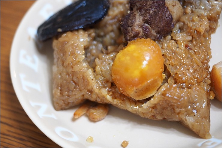 這顆是港式叉燒粽新口味(135元),我是吃過叉燒飯、叉燒包啦,就是沒吃過叉燒粽,把港式叉燒包進粽子裡倒是頭一回!食材有香菇、蛋黃、叉燒肉。