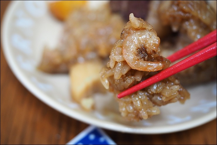 粽子的米粒也很夠味,軟Q好入口,大人小孩都喜歡,飯裡很不客氣的加了不少蝦米,每一口幾乎都吃的到料,干貝、五花肉、香菇、蛋黃、蝦米,料多實在很美味,大推經典口味。
