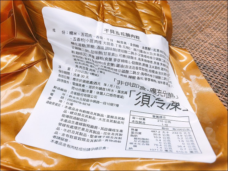 這次試吃奇華餅家的五月粽,有三種口味,分別是經典的干貝五花腩粽、新口味港式叉燒粽及甜口味紫米豆沙粽。每顆粽子都有真空包裝,背面有貼粽子口味、成份、加熱說明等等,金色包裝好貴氣,冷凍保存期限可以放一個月,奇華五月粽系列即日起至6/7門市預購享買6送1優惠(以最低價贈送),官網享8顆85折優惠,另外,折扣後滿900元送保冷袋一個(送完為止)。