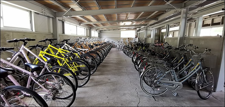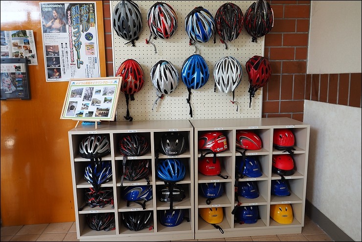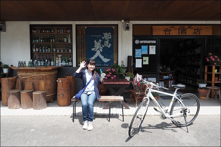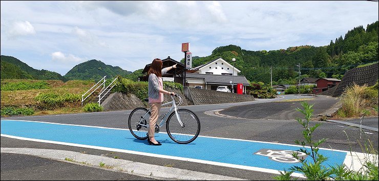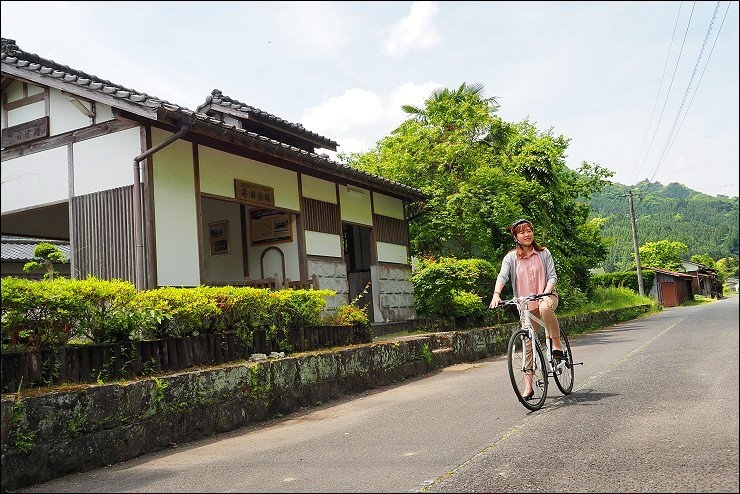 接著一路騎到青之洞門約5公里30分鐘,這邊還車處沒有人看管,只要把車停好就行,若是要在這站租借腳踏車,是在要斜對面的風水園才可租借。從耶馬溪自行車站到青之洞門路程約十公里,騎腳踏車既悠閒又不累,慢慢騎差不多一個半小時,像我們愛拍照走走停停的旅人,建議時間可以抓鬆一點!