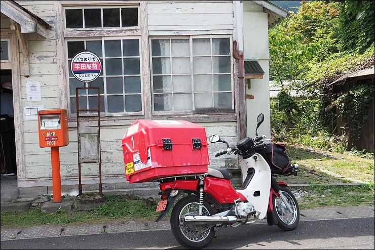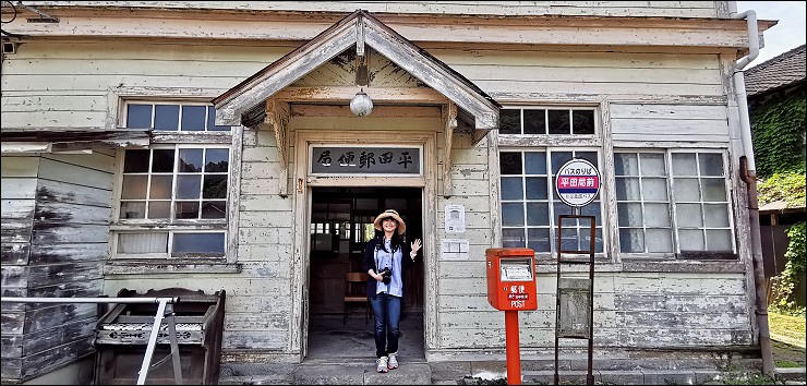 日本同行旅伴帶我們騎出自行車道,離平田宿場不遠,這間平田郵局老屋好有味道哦,這段路平緩好騎,沿途經過松樹林、田原溪流、山側小徑,中段平田宿場有提供洗手間可以方便一下XD