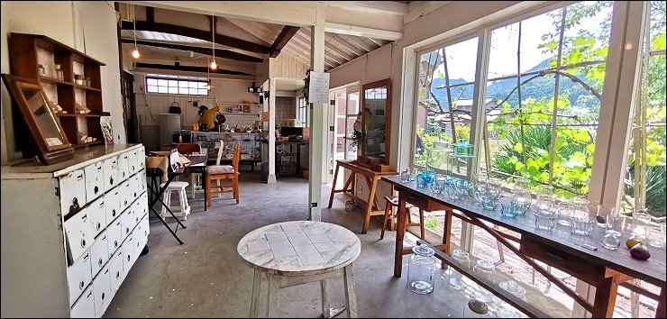 往廢棄老郵局旁邊有走進竟是另一番天地,好文青好有味道的咖啡店哦!氣筫的女老闆低頭忙碌著,好喜歡這裡的一景一物,要不是時間不許可,我跟旅伴真想待坐在這裡,點杯咖啡,享受陽光綠意的悠閒。