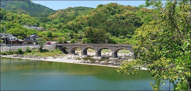 走出青之洞門過個小馬路會看到「耶馬溪橋」全長116公尺,是日本最長的石造拱橋,兼具觀光和交通功能。聽說橋的對面也有一家很有名的麵包店「小谷瀬パン工房」,這回無緣相見,留待下次踩點!