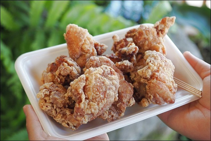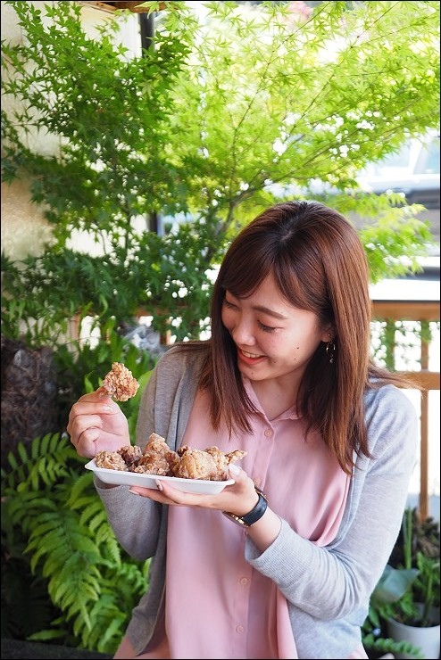 中津炸雞的特色是有先用醬油、大蒜等調味料先醃過,我們點無骨雞腿肉(220日圓/100g),現點現炸,雞塊滿大塊的,重點是每塊都附皮,我最愛雞皮啦!!外皮炸的酥脆,咬下去有肉汁,肉有醃過不用沾醬就很夠味,外酥內嫩,我喜歡!