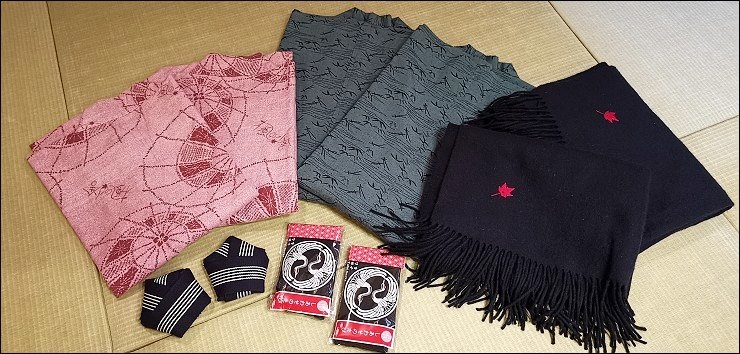 櫃子裡有準備浴衣及圍巾,圍巾很重要,我們隔天大清早起床好冷,飯店準備的圍巾派上用場,讓我們騎腳踏車可以圍著脖子保暖。