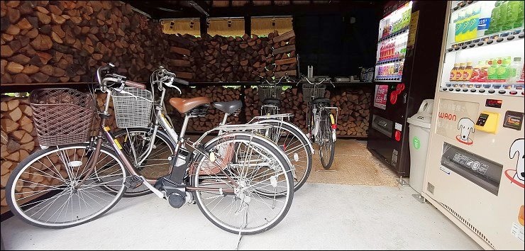 楓之小舍有提供電動腳踏車租借(400日圓/次),這裡離湯之坪及金麟湖不遠,步行約十幾分鐘,我跟旅伴商量著想拍金麟湖的朝霧,這可是要大清早太陽剛升起才會有的美景,在房裡享用美味晚餐時,我們就先預約隔天一早的電動腳踏車,電動腳踏車超省力,出門在外要跑太多地方,體力能省則省。其實來九州這幾天我感冒很嚴重,咳到爆裂,同伴也遇到生理期,五點多鬧鐘響起時,我超想賴床的,但想著難得騎個五分鐘就能到金麟湖,這時不去待何時!衝了!立馬從床上跳起來騎車出門去!