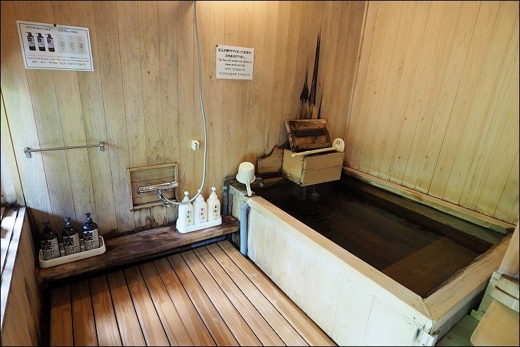 好大間的泡湯區,二種品牌盥洗用品六大罐,來日本泡湯一定要遵守泡湯禮儀,不論是在大眾池還是個人池,都是要先把身體洗乾淨,有的人習慣連頭一起洗乾淨才下去泡湯,身體不能圍毛巾,要一絲不掛的下水,泡湯時頭頂可以放一條小毛巾備用,但不能讓小毛巾弄到湯池裡,乾乾淨淨的泡個舒服的湯,有機會一定要帶阿弟一起來泡湯享受。