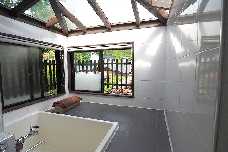 客廳窗戶看出去就是我們專屬的湯屋~~好讚唷!