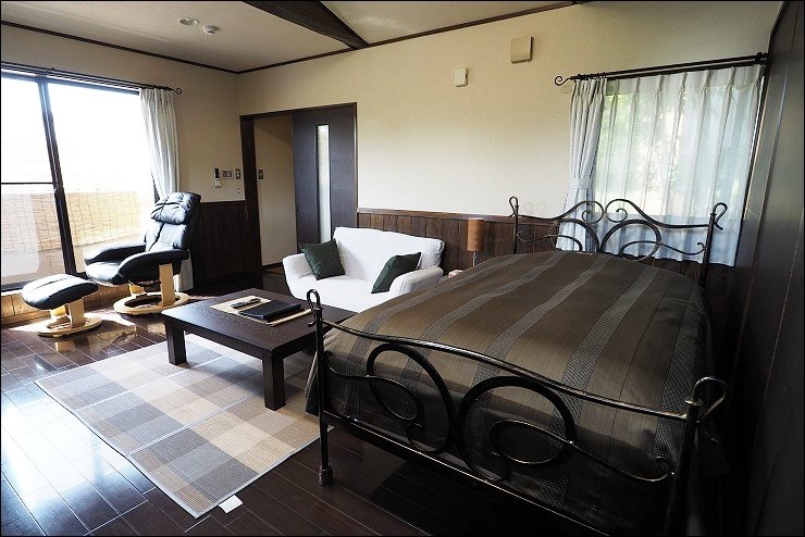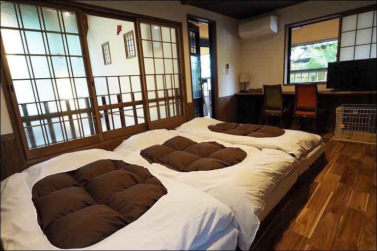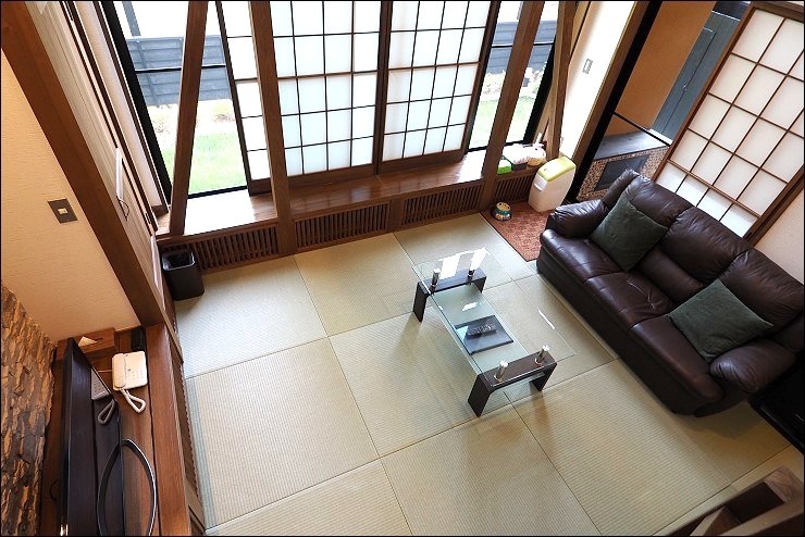 好大間啊,進到客廳前還有一區空間,用來攤開我們二大咖行李剛剛好!榻榻米的味道好舒服,很愛光著腳在榻榻米上亂走,客廳擺客也很溫馨雅緻,這裡舖床墊可以睡二人,樓上還有二張單人床,獨棟二層樓可住3+1,很適合家庭親子入住。