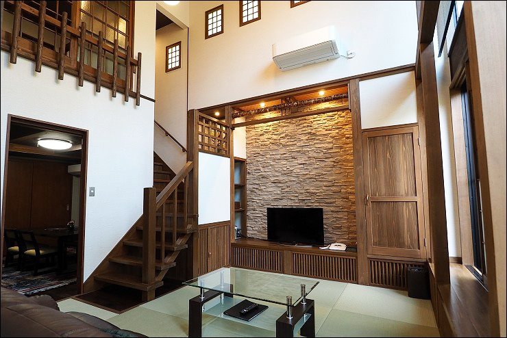 這間超級大房可以住到六個人,挑高大客廳好適。