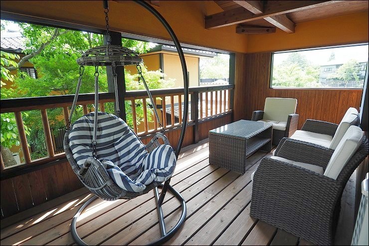樓上是臥室及陽台,這吊椅感覺大家會搶著坐,躺在這欣賞這片美景好棒哦!要是秋天紅葉季肯定又是美翻的景色。