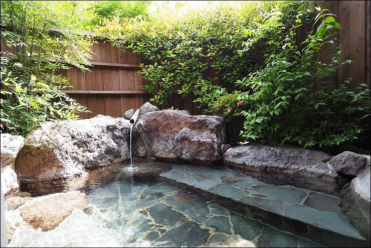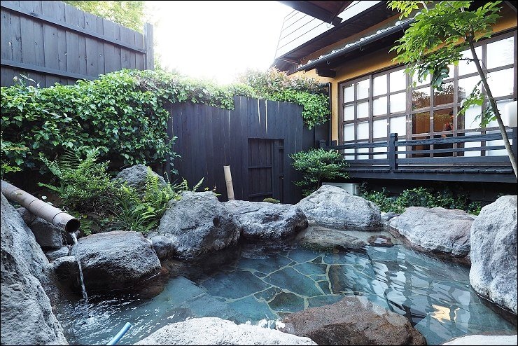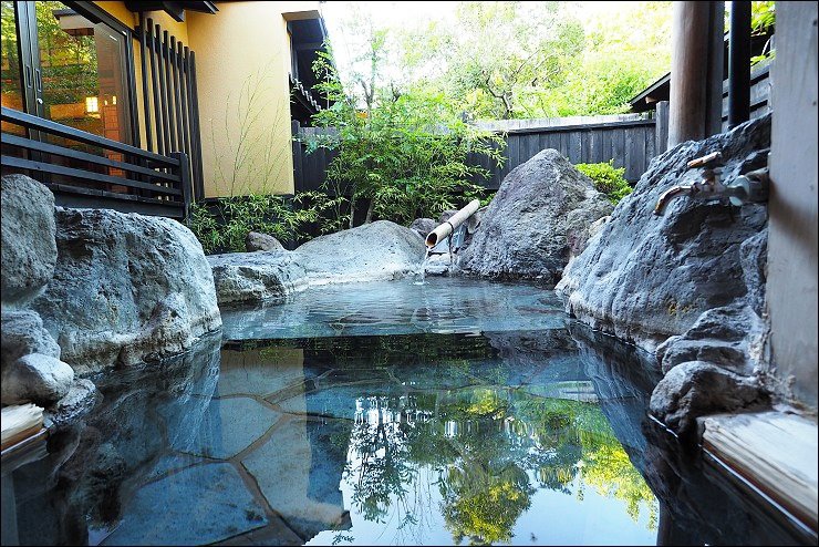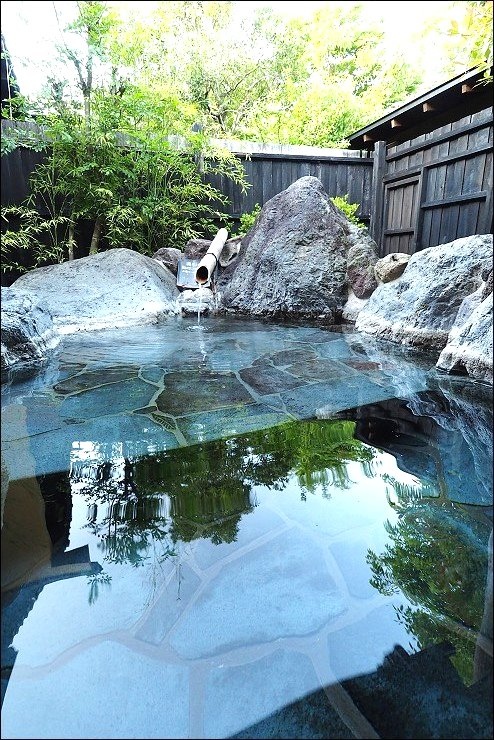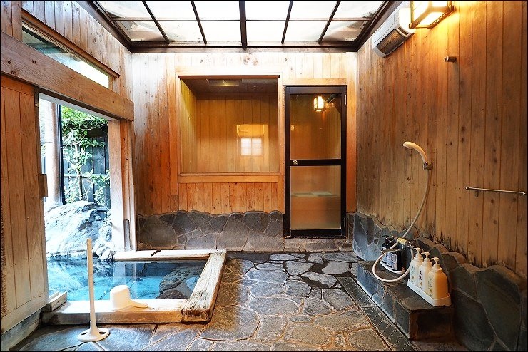 有室內、室外泡湯及雙人岩盤浴,室外的泡湯還有一小池,這間是可以帶竉物入住的友善溫泉飯店哦,我們來這天剛好就有日本旅客預約這間,他們就有註明有帶狗狗來,飯店還有在房間準備狗狗碗等用具,很貼心。