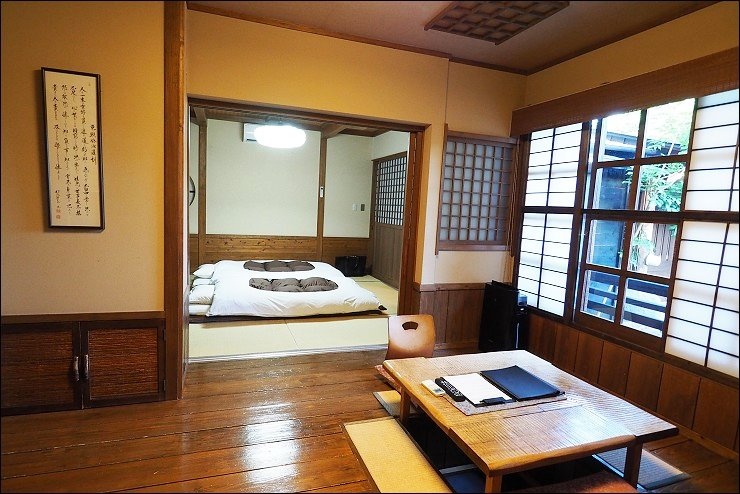 另外,楓之小舍也有單人房,這樣單身旅行的背包客來說真的是一大福音,要知道,日本很多溫泉飯店不接受一人住房的,這間單人房日洋式合併,浴池的天頂是透光的玻璃,泡累了直接在旁邊的岩盤浴躺著,光用想像的我就覺得全身放鬆,眼皮不自覺想閉上了。