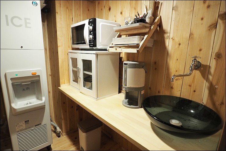 另外若是有自己帶什麼吃的要微波,這裡也有微波爐,馬克杯、咖啡、糖包、奶精及製冰機這邊也有,只是要出房門來這裡拿。