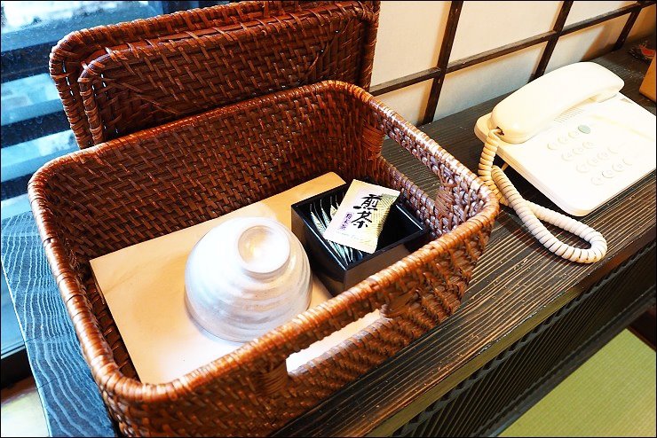 電話、熱水瓶及茶具都在這個櫃子,附日式煎茶包。