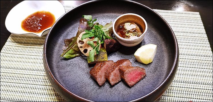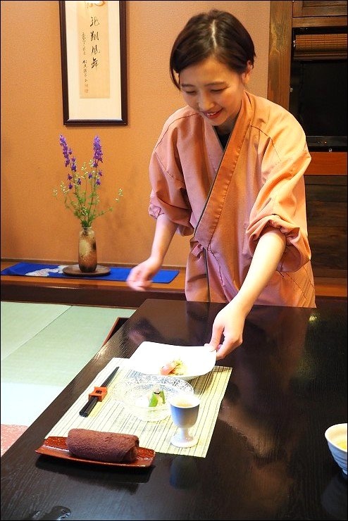 楓之小舍的餐點可不一般,是得到米其林的肯定,住這一定要一泊二食,在房裡享用它的季節食材料理才行。