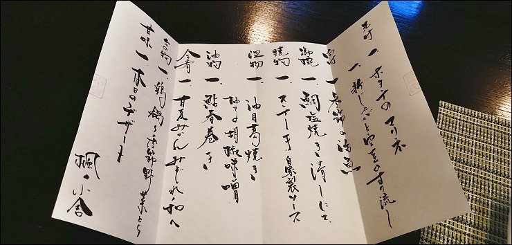 參觀完房間每間都很喜歡!拍完照很快地就到了晚餐時間啦!手寫餐單,生魚片、豐後牛、燒物、溫物、炸物都包了,光看就覺得很豐富。