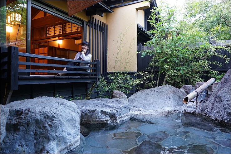 客廳面窗好讚,看出去就是我們可以獨享的露天風呂,午後陽光好溫柔,等會晚餐是坐在這裡享用。
