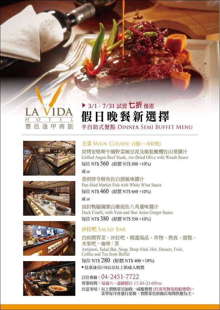 📣假日提供晚餐加購專案優惠(單點主餐含沙拉吧吃到飽)