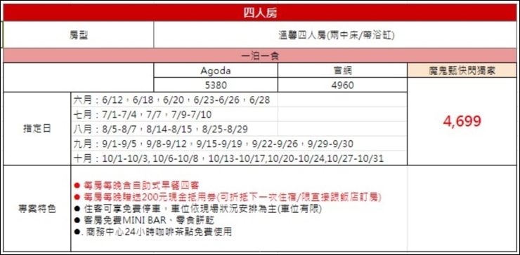 📣官網雙人房和四人房指定日破盤價(快閃團再下殺)
