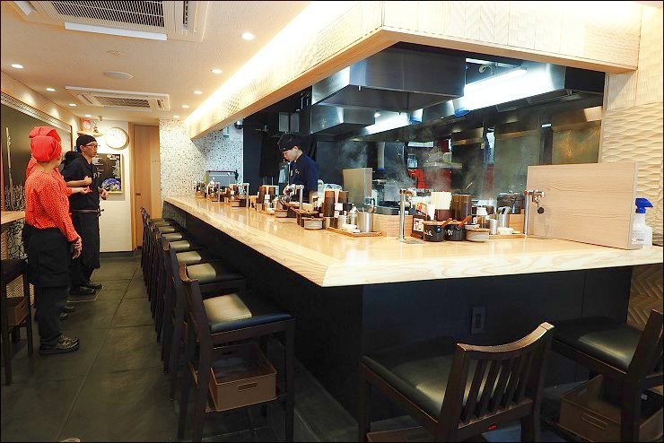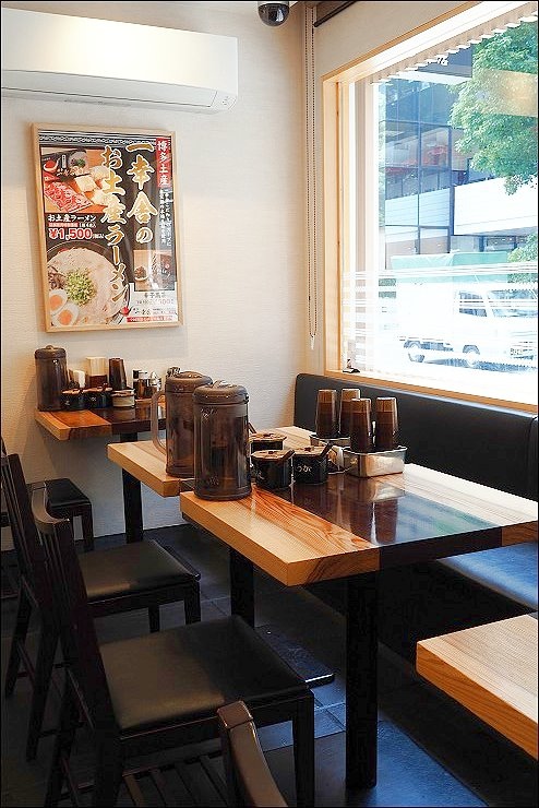 博多一幸舍總本店室內很日風,我很喜歡吧檯區,可以邊吃麵邊欣賞認真作麵的店員,窗邊有沙發座位,雙座桌可併成四人座,去年帶阿弟跟朋友一起來的時候就是坐這邊,現在店面重新裝潢,更明亮清爽。